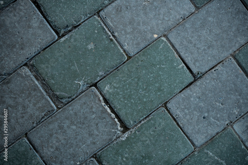 Texture of paving slabs overgrown with grass. Background image of a stratum stone