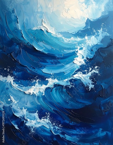 sea, wave, ocean, blue, water, texture, abstract, art, painting, movement, white, foam, swirl, brushstroke, impressionism, ripple, fluid, motion, energy, depth, horizon, marin, sky, coastal, serene, dynamic, light, surge, canvas, artwork