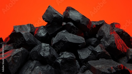 Textured black volcanic stones on a vibrant red background, creating a bold and dramatic effect