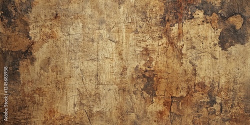 Textured grunge background in earthy tones of brown and beige with scratches and weathered spots creating a rustic and aged appearance.