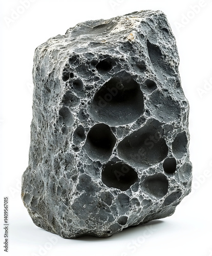 Textured volcanic rock with unique holes and patterns on a white background
