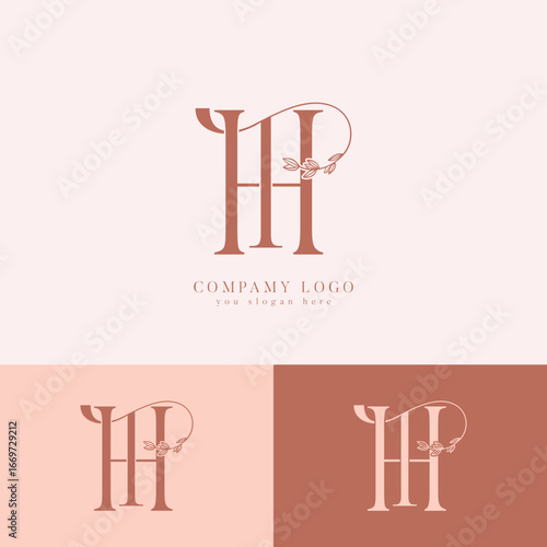 TH, HT initial letter monogram logo with floral