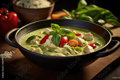 thai, food, cookery, spicey, coconut, vegetable, chicken, shrimp, tofu, aromatic, delicious, favor, authentic, traditional, tasty, hot, exotic, generative, ai