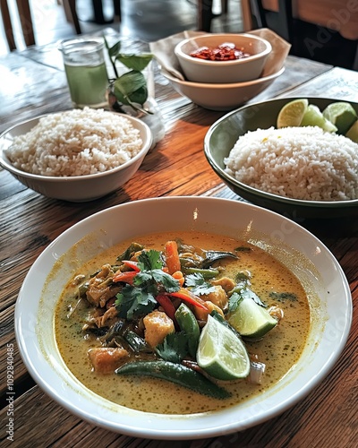 soup, food, meal, vegetable, bowl, dinner, meat, thai, dish, cookery, delicious, lunch, beef, chicken, healthy, hot, noodle, pork meat, stew, green, curry, fresh, noodle, plate, white