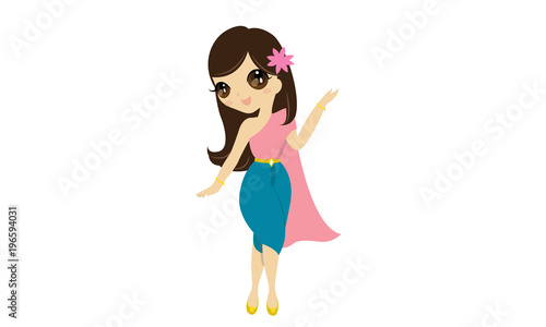 dress, siam, fashion, isolated, white, hair, pink, portrait, pretty, model, person, cute, studio, smile, happy, people, princess, red, long, face, black, dance