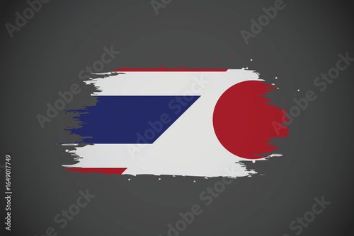 Thailand and Japanese Flags Overlaid with Textured Brush Strokes.