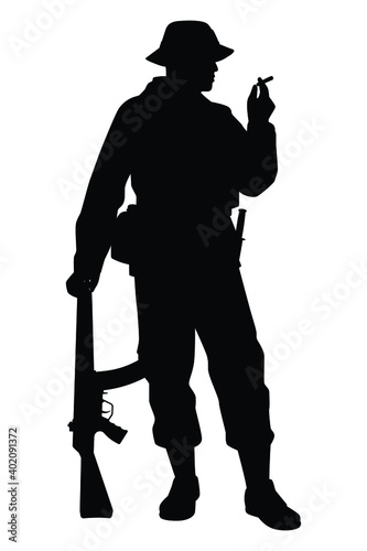 11, armed, army, background, battle, black, border, bullet, chasseur, civil, combat, commando, detailed, force, forest, gun, hat, hunter, illustration, infantry, isolated, kill, long, machine, male, man, marin, military, 1, patrol, people, person, ranger, rifle, security, shot, silhouette, soldier, special, standing, strong, thai, siam, uniform, vector, war, warrior, weapon
