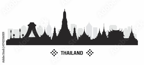 Thailand Landmarks Skyline and Silhouette Vector Set. Cityscape Illustration Featuring Famous Thai Attractions and Travel Backgrounds. Flat Vector Art for Tourism and Travel Design Projects.