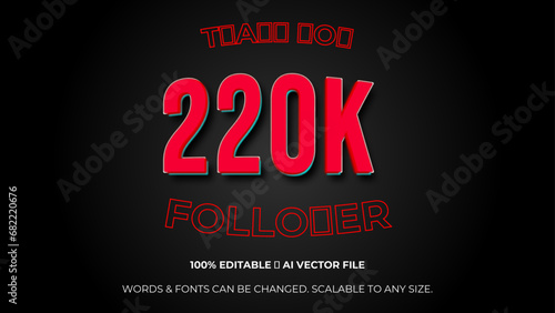 Thank you 220K followers congratulation template banner. 220k celebration subscribers template for social media. Editable text style Effect. Vector illustration.
