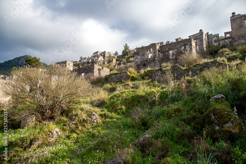 The abandoned Greek Village of Kayakoy, Fethiye, Turkey. Old greek houses, kaya koy near Mediterranean coast.
