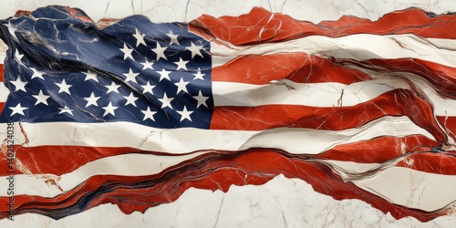 flag, american, united, state, star, stripes, red, white, blue, texture, abstract, artistic, design, pattern, wavy, flow, motion, movement, marble, stone, vein, fractured, weathered, aged, grunge, vintage, rough, elegant, surface, decorative, illustration, composition, element, symbol, national, independence, freedom, patriotism, fabric, render, three-dimensional, graphic, style, detail, colours, vibrant, material