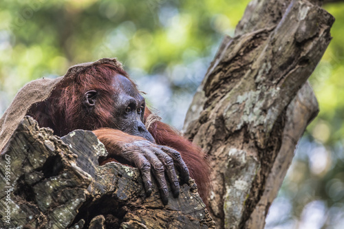 The adult male of the Orangutan in the wild nature. Island Borne
