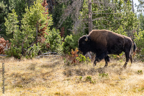The American bison, American buffalo, or simply buffalo. Mud Volcano area, Yellowstone National Park, Wyoming.