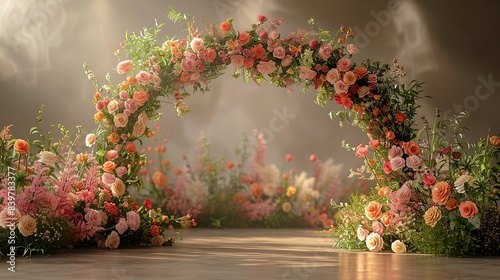 archway, decorated, seasonal, flower, each, act, different, time, year, studio, subtile, prop, shiny, minimal, simple