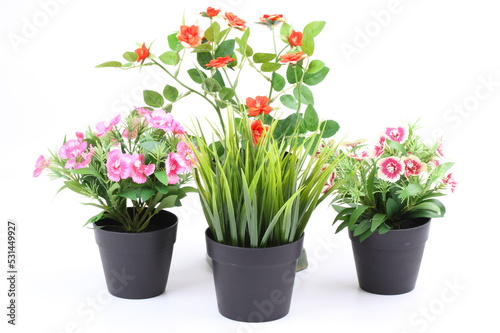 The artificial flower in the pot on white background