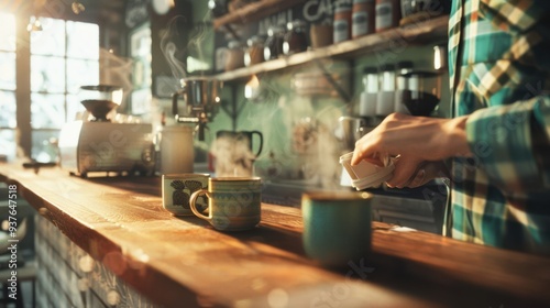 barista, hand, eatery, hot drink, professional, cafes, kitchen, interior, drink, milk, beverage, table, morning, vintage, espresso, brewing, service, casual attire, hand-made, wooden, latte, machine, mug, apron, cup, counter, equipment, fresh, hipster, serving, hot, steam, rustic, preparation, cosy, breakfast, warm, aroma, atmosphere, skilled, steamed