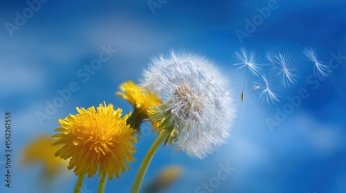 blowball, flower, nature, spring, summer, rustic, bloom, garden, vibrant, seed, pollen, blue, macro, colourful, outdoors, bright, beauty, landscape, freshness, herbal, growth, calmness, park, sunshine, flora, environment, wildflower, blossom, natural, health, meadow, seasonal, texture, detail, closeup, soft, breeze, purity, awakening, yellow, panoramic