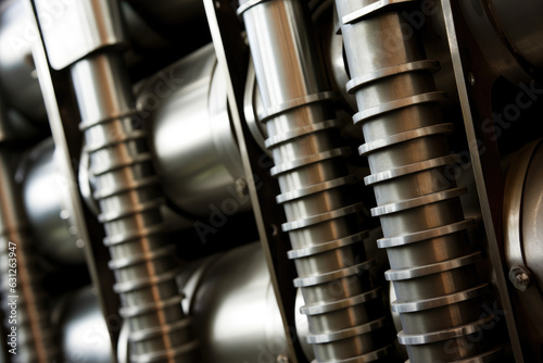 The beauty of industrial design and mechanical engineering is displayed in this close-up of industrial dampers with abstract shapes and forms.