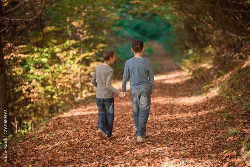 the boys walks down a mountain path