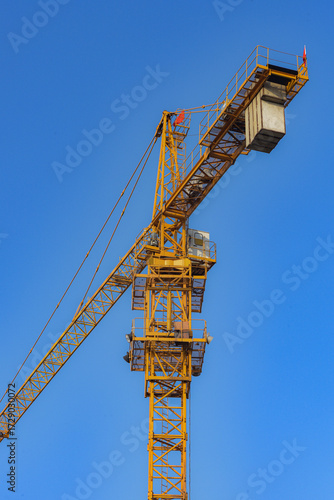 crane, machine, sunny day, heavy, closeup, outdoors, background, no people, counterweight, urbanism, load, safety, perspective, hoisting, export, transport, clear day, architecture, engineering, equipment, crane, industrial, construction, lifting, blue, building, industry, metal, business, development, steel, sky, machinery, technology, tower, tall, modern, city, cargo, installation, building, infrastructure, site