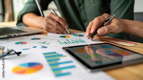 office, technology, finance, business, professional, planning, brainstorming, analysis, teamwork, hand, laptop, tablet, meeting, chart, strategy, presentation, working, datum, work, market, document, people, paper, digital, accounting, collaboration, desk, graph, statistic, corporate, discussion, closeup, research, partnership, project, investment, management, report, economy, financial, development, businessperson, marketing, company