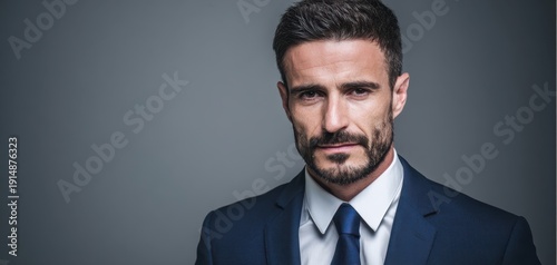 portrait, businessman, suit, attaching, executive, professional, confident, serious, bearded, mature, head shot, studio, corporate, formal, entrepreneur, model, groomed, stylish, leadership, ceo, closeup, intense, gaze, portraiture, indoor, classic, blue, short hair, smart, male, photo