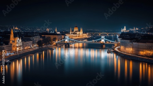 The capital city iconic buildings and bridges lit up at night, creating a breathtaking cityscape