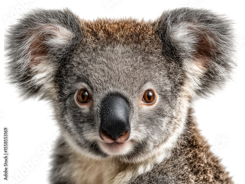 The captivating close-up of a koala, its soft gray fur, expressive eyes