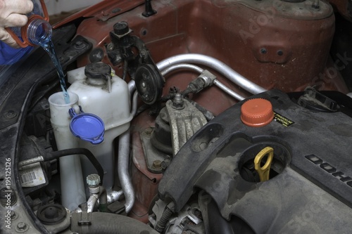 the car mechanic fixes the car engine by tools