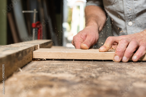The carpenter manually mills the part
