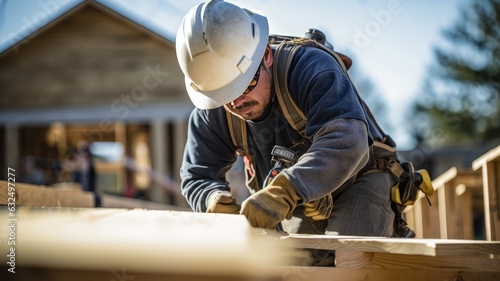 The carpenter working with wood on the site