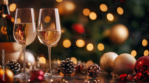 champaign, christmas, glasses, wine, celebration, holiday, drink, alcohol, new, decoration, party, year, gold, gift, beverage, celebrate, christmas, festive, object, eve, 2, ball, goggles, new year, happy