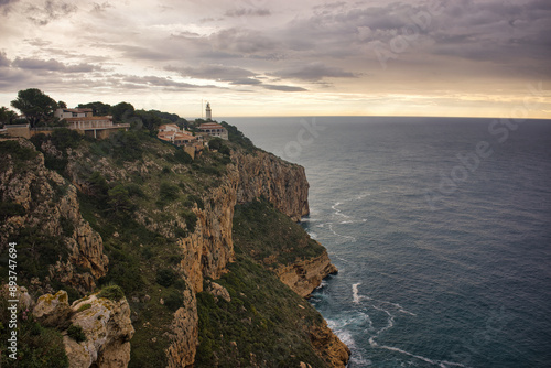 cliff, spain, calm, horizon, panorama, healthy, evening, sunrise, sky, alicante, mediterranean, paradise, tour tourism, sea, summer, beautiful, vacation, coastline, nature, water, coast, blue, ocean, beach, sunset, travel, landscape, lighthouse