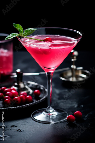 The cocktail is cosmopolitan in a glass. Selective focus.
