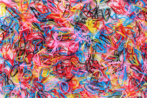 The colorful hair rubber band backgrounds are laid out on a lot of ground, making them an ideal background for designs and copy space for advertising text. colorful fashion hair rubber band background