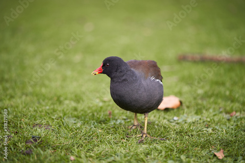 The common moorhen, Gallinula chloropus, also known as the waterhen, the swamp chicken, and as the common gallinule is a bird species in the rail family, Rallidae. It is distributed across world.