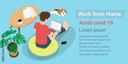 man, work, home, avoid, pandemic, online, business, freelance, protect, prevent, outbreak, job, virus, infection, laptop, mattress, dog, computer, epidemic, pet, house, cyberspace, lounge, network, remote, resting, banner, desktop, tree, hot drink, office, social, connect, danger, disease, distance, distant, fever, health, disease, widener, wireless, communication, employee, company, lifestyle, mobile