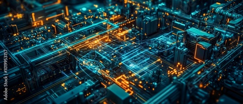 digital, supply, chain, factory, holographic, machine, robot, real, time, datum, global, network, technology, glowing, management, automation, production, seamless, efficiency, high, quality, composition, lighting, sharpness, expertise, professional, photo, panorama, wide, banner, title, landscape, horizontal, hero, background, desktop, wallpaper