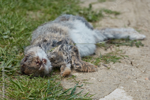 The corpse of a rabbit near the Valchico Lagoon in the Meaques Retamares Environment. Madrid. Spain