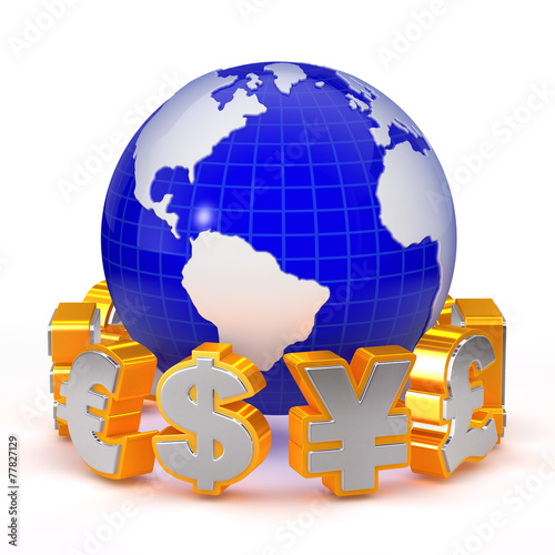 fx, exchange, economic, currency, money, trade, yen, dollar, euro, finance, business, symbol, earth, symbol, world, global, bank, white background, payment, gold, design, gold, concept, rendering, illustration, three-dimensional