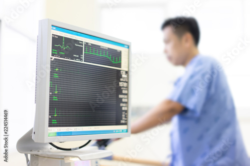 The doctor check heart rate and pulse of patient by running test for protect the heart attack.