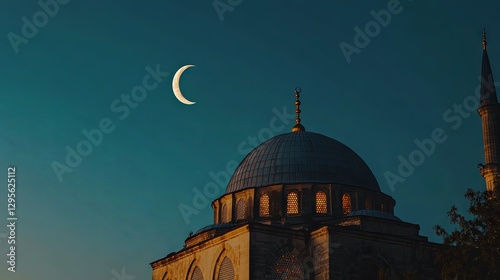 dome, mosque, twilight, sky, crescent, moon, dark, blue, background, symbol, islamic, religion, ramadan, architecture, night, spiritual, sacred, crescent moon, belief, faith, tradition, culture, holy, landmark, design, beauty, spirituality, heritage, illuminated, worship, peaceful, tranquil, free space, silhouette, serenity, atmosphere, religious, prayer, devotion, history