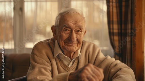 man, portrait, senior, elderly, mature, smiling, family, happy, casual attire, home, closeup, sunlight, sitting, goggles, grandfather, serene, indoor, wrinkle, relaxed, window, retired, peaceful, cosy, natural, looking, lifestyle, aged, expression, wisdom, friendly, sweater, life, morning, elder, intimate, content, warmth, comfortable, tranquil, life events, longevity, kind, sentimental