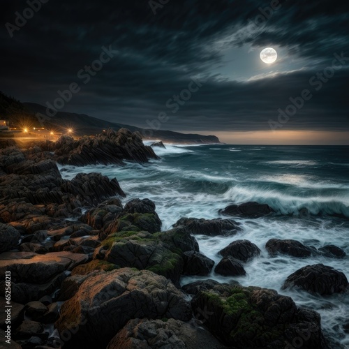The Elegance of a Mystical Nighttime Seascape, Generative AI