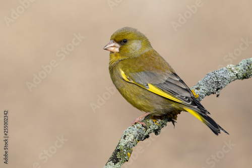 The European greenfinch (Chloris chloris) or common greenfinch is a songbird of the order of the Passeriformes and the family Fringillidae.