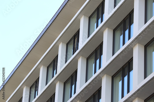 The facade of the building with Windows on the background of blue sky