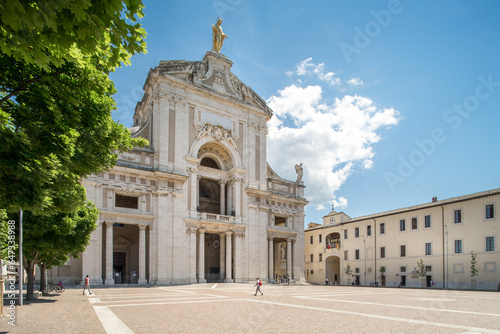 the façade of the Franciscan Basilica in Santa Maria degli Angeli , in Assisi, Umbria Italy , 3 June 2021