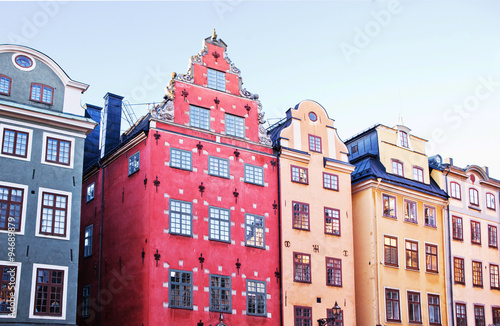 The famous buildings in the central square of Gamla Stan, Stockholm.