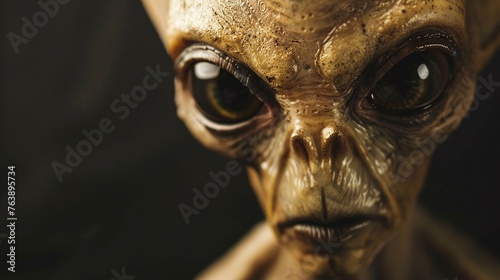 the fantasy of interstellar travel is brought to life with a closeup of an alien isolated on a black background