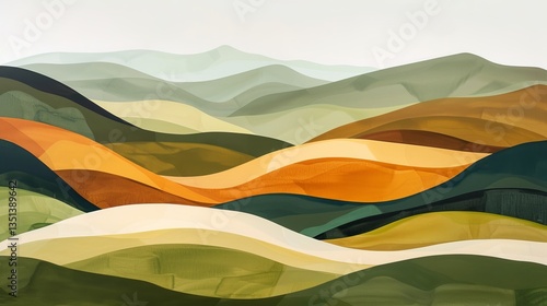 The foreground features layered wavy lines that evoke rolling hills or dunes